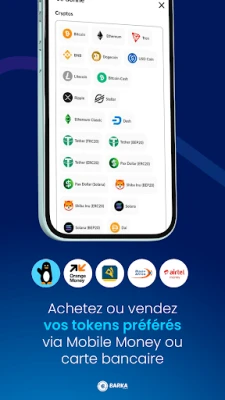 Barka Change yana ba ka damar saye da sayar da kuɗaɗen crypto da na dijital ta mobile money kamar Orange, Moov, MTN, Airtel, EMoney, da kuma VISA & MASTERCARD. Hakanan zaka iya musanya kuɗin crypto daban-daban tsakaninsu cikin sauƙi.