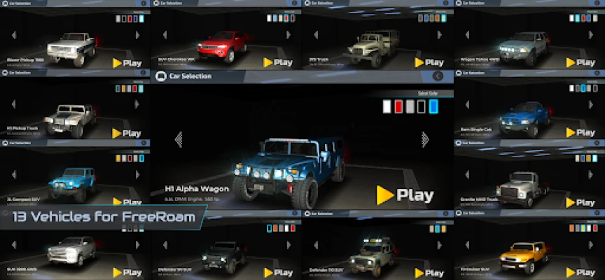 **OffRoad Drive Simulator** yana ba da damar gyara ingancin hotuna daga mafi ƙasƙanci zuwa mafi girma (UltraHigh) don dacewa da ƙarfin na'urarka, hakan zai inganta sarrafa motar da kuma sa wasan ya zama mai saurin amsawa. Zabi daga harsuna daban-daban guda 13 don jin daɗin wasan yadda ya kamata. Za ka sami damar tuƙa motocin Off-road guda 13, kowannensu yana da tsarin dakatarwa mai inganci da fasalulluka na musamman. Akwai matakai 16 masu ban sha'awa da taswirori guda 10 waɗanda ke jiran ka gano (za a ƙara sababbi a sabuntawa na gaba). Buɗe sabbin taswirori da motoci a yanayin 'FreeRoam' ta hanyar kammala matakai a yanayin 'Career Mode'. Zabi kowace taswira da mota da kake so, har ma da canza tsakanin yanayin rana da dare.
